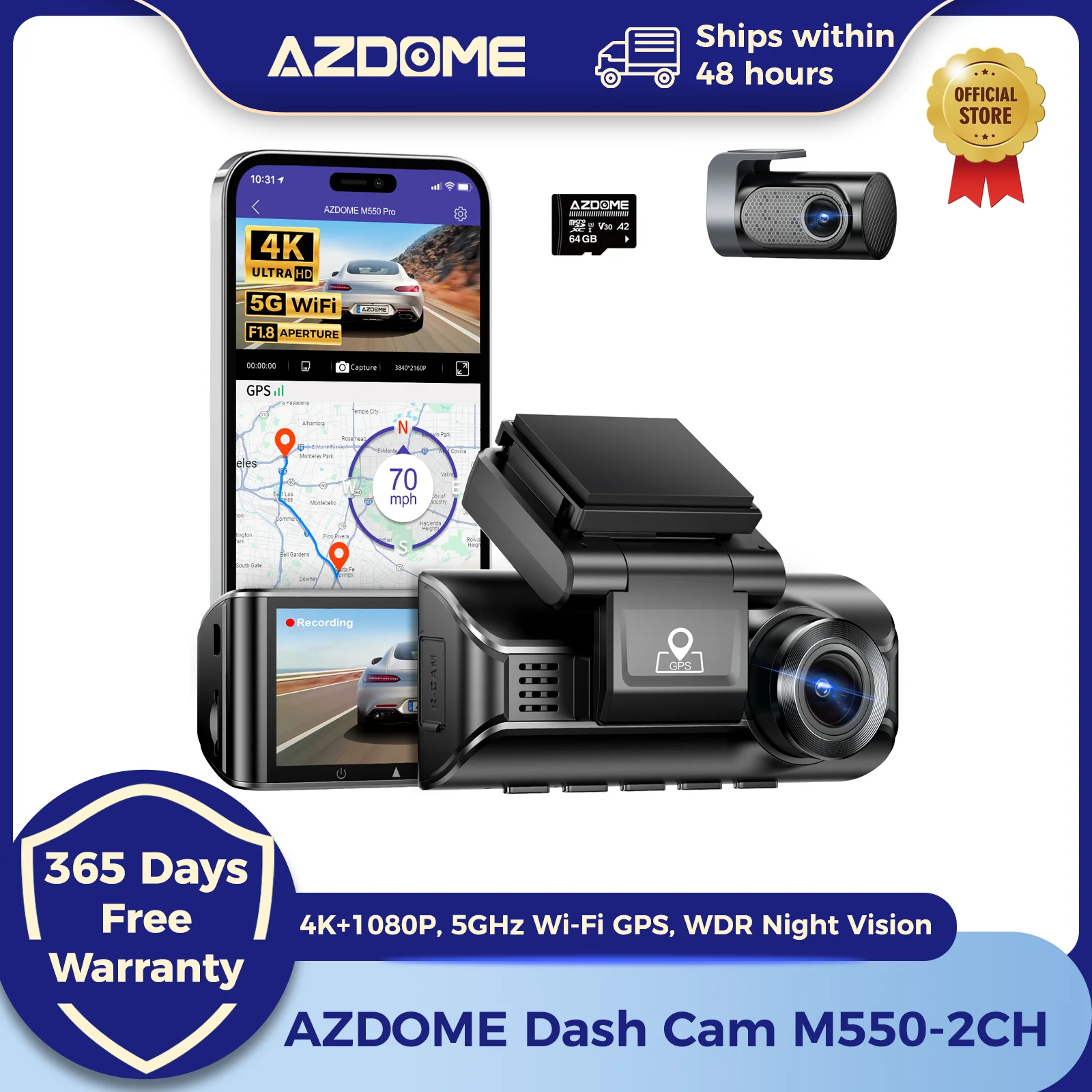 AZDOME M550 Pro 4K + 1080P Dash Cam أمامي وخلفي 3.18 بوصة IPS شاشة Dashcam 5 جيجا هرتز Wi-Fi GPS 150°كاميرا سيارة FOV WDR للرؤية الليلية